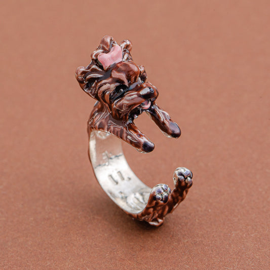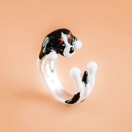 cavalier king ring custom possibility of engraving dog name and customizable enamel MADE IN ITALY dog hug regali di San Valentino per lei