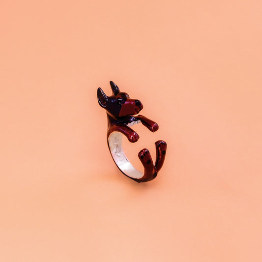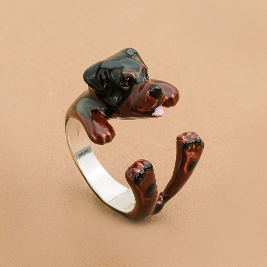 Dobermann argento 925 dog ring- argento - enamel jewelry - dog lover - - amante dei cani - smaltato - My Silver pet ring dog hug : dobermann