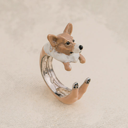 Corgie Anello argento 925 dog ring- argento scolpito - - dog lover - - amante dei cani - smaltato - My Silver pet ring dog hug : Corgi