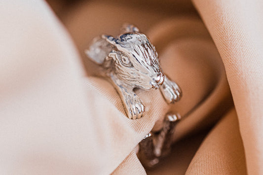 Jack Russell Long hair ring silver 925 handmade italy bronze 18 kt
