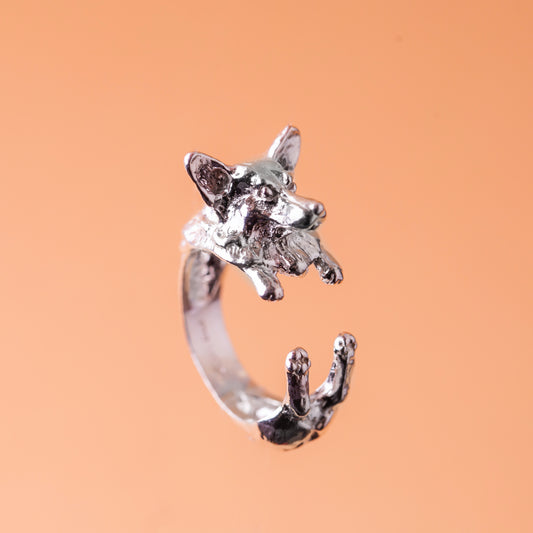 CORGIE ANELLO dog ring- argento scolpito - - dog lover - - amante dei cani - smaltato - My Silver pet ring dog hug : CORGI
