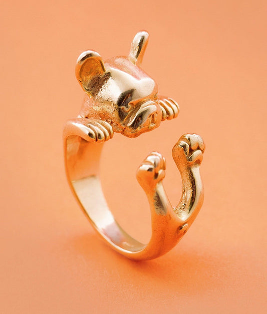 Bulldog francese ring- argento scolpito - - dog lover - - amante dei cani - smaltato - My Silver pet ring dog hug : french bull dog